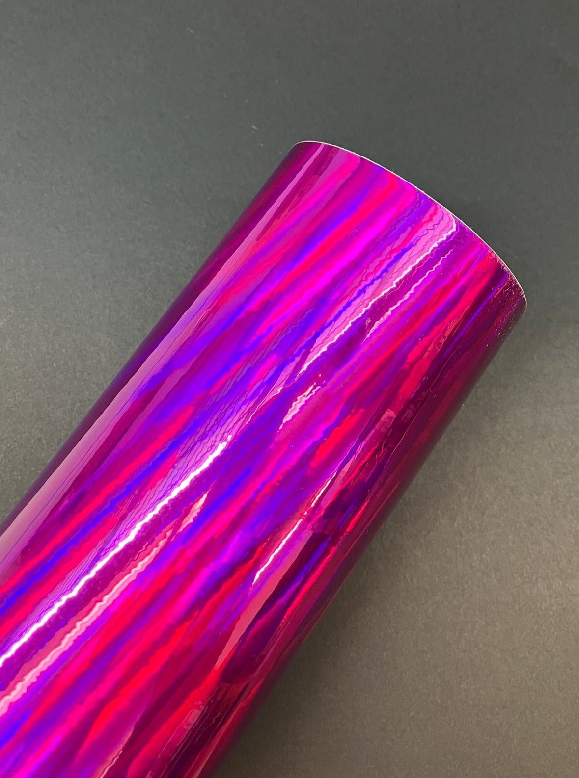 Experience our exclusive Purple Holographic Adhesive Vinyl by TrueCut. This artistically designed film features a stunning purple shade and shimmering holographic effects that gracefully shimmer in any light. With a 3 mil thickness, this vinyl is both durable and versatile, making it ideal for a variety of applications including decals, labels, wristbands, and more. Plus, it is environmentally friendly and proudly made in the USA. Compatible with Eco Solvent, Solvent, UV, and Latex printers. With a 90# Lay Flat Liner and permanent adhesive, you can trust in a strong and lasting hold. Say goodbye to shim lines and scratches with this durable, scratch-resistant vinyl. Available now on a 3" core.