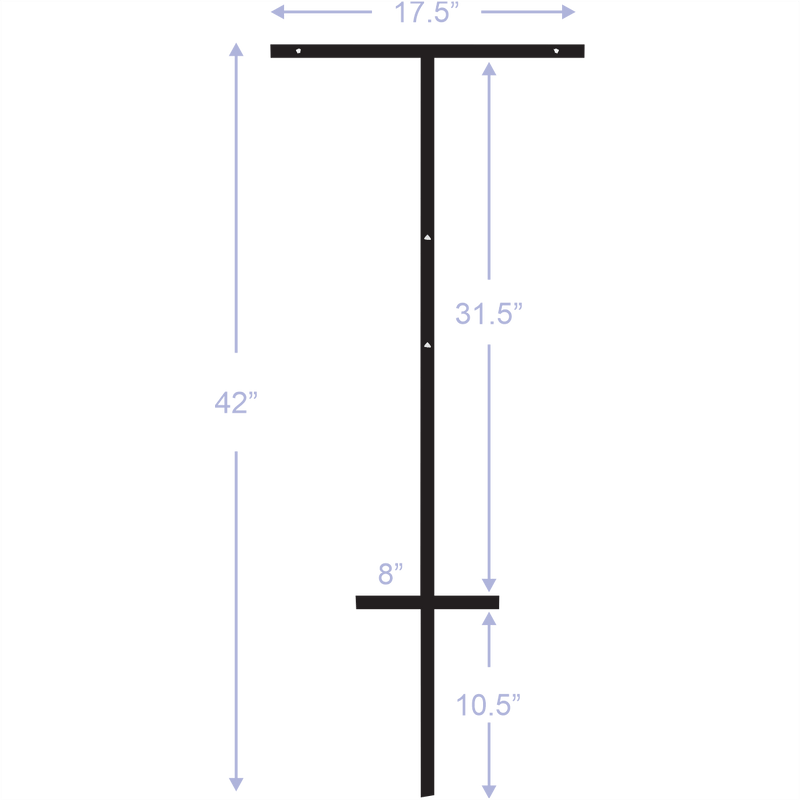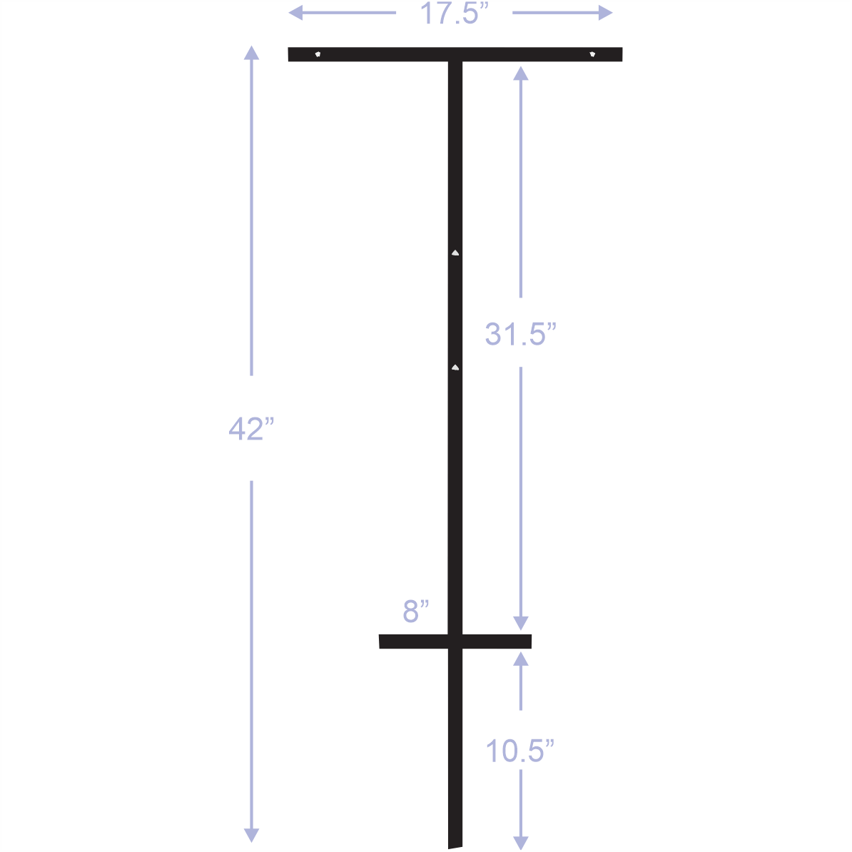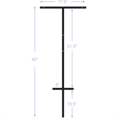 Display your yard sign with a sturdy T-bar stake. Great for signs up to 30"W x 48"T. Polished black finish made from 3/4" black angle iron. Overall size: 42"H x 17.5"W.