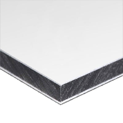 Aluminum Composite Material (ACM) is a rigid sheet made of two sheets of pre-finished aluminum, bonded to a polyethylene core. It is light-weight without sacrificing durability. ACM may be cut with standard woodworking tools or the 3mm may be scored on both sides and snapped cleanly.