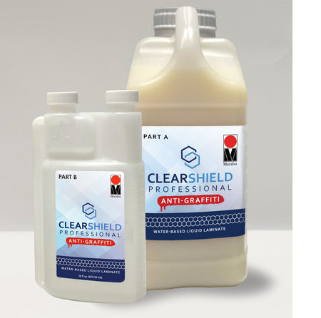ClearShield Professional Anti-Graffiti is a two part water-based system formulated to provide protection against graffiti. It can be applied by hand by a roll application or spray equipment. Parts A and B must be mixed together prior to use. Parts A & B are included with each order. Typical roller coverage is 115 - 120 ft2 per quart.