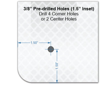 Default Specifications: Corner Radius 1.50", Hole Size 3/8", Hole Inset 1.5" (on center).