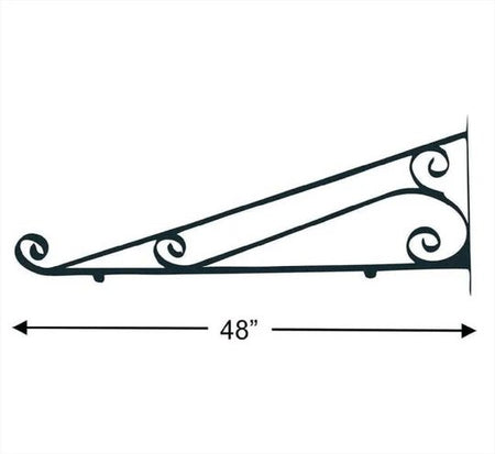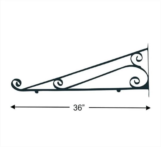 Black, heavy duty, decorative Scroll Brackets for hanging projecting signs from storefronts. Scroll Brackets are traditionally used to improve sidewalk and road visibility. Made from black, scrolled and welded steel. For added safety, install guy-wire cross bracing when used for exterior applications to add strength against high winds.