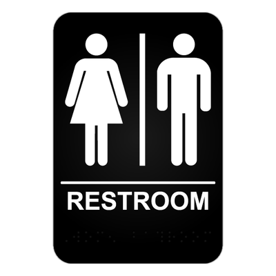 ADA Signs with Grade 2 Braille. Self-mounting molded plastic with contrasting colors. Includes placement instructions for ADA compliance. 9" x 6"